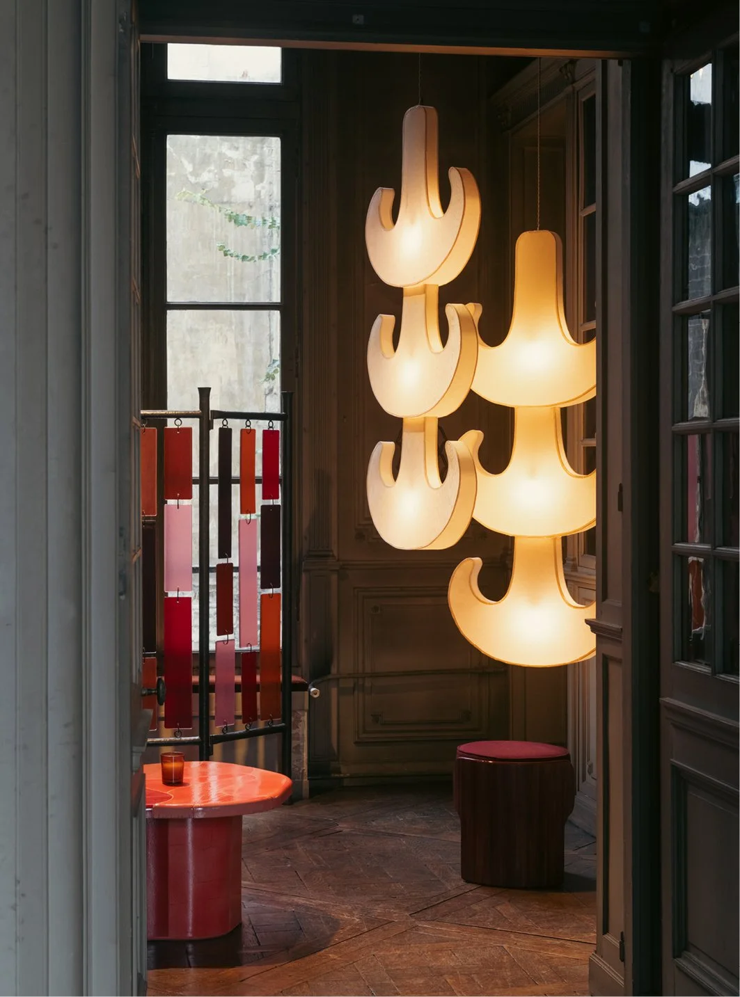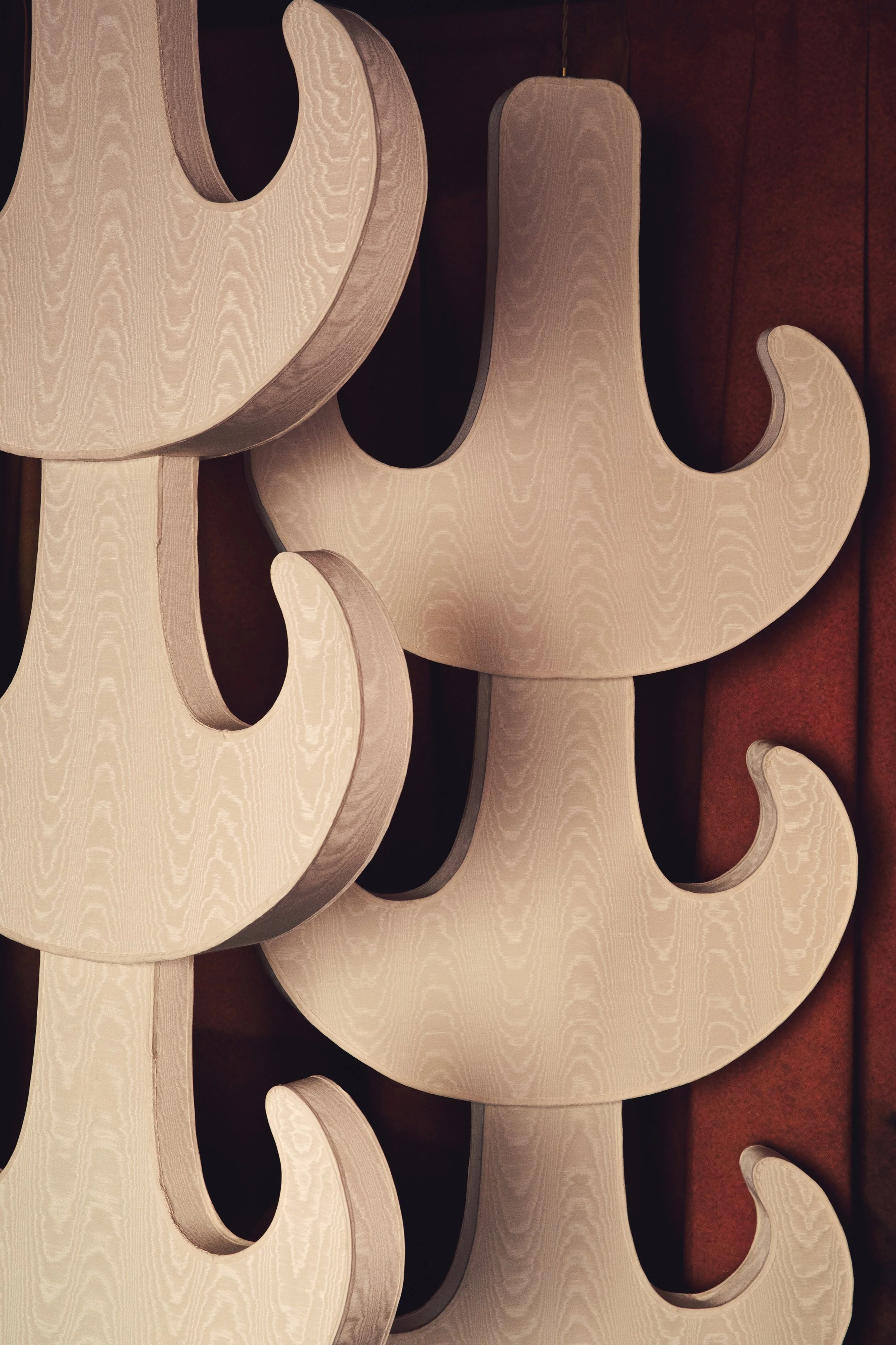 Light totems as a tribute to the moon and its eternal celestial journey. Floating ghosts, whose ramified structure suggests the elusive and ever evolving trajectory of the sacred crescent upon the horizon.